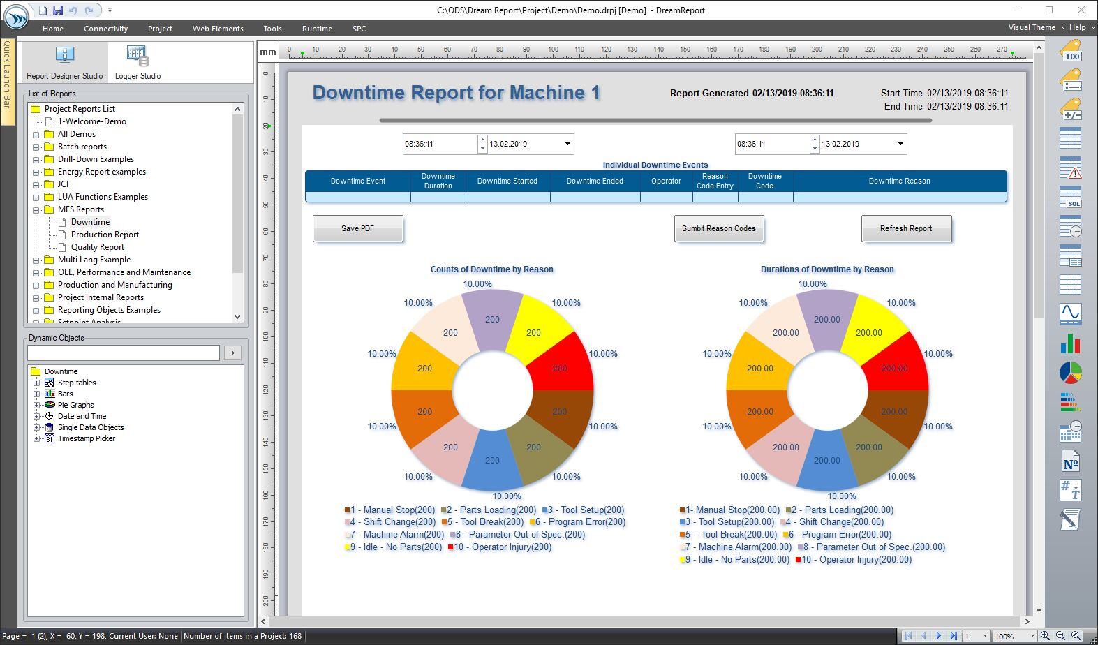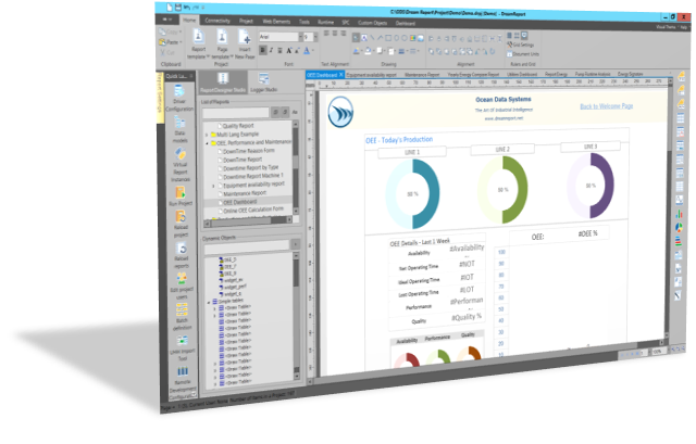 Dynamic Data Objects: The Dream Report Object Toolbar provides a dynamic object library designed for automation reports. Process data can be displayed to the form by simply dragging the desired object to the report designer workspace and adding a list of the items to be included in the report. Let the object handle all of the data extraction for you.
