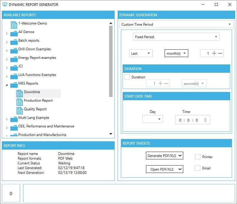 Generate Reports On Demand: The Dynamic Report Generator enables the user to select any report template and manually generate a new report with the last updated values. Then open and view the new report with a single click of a button.