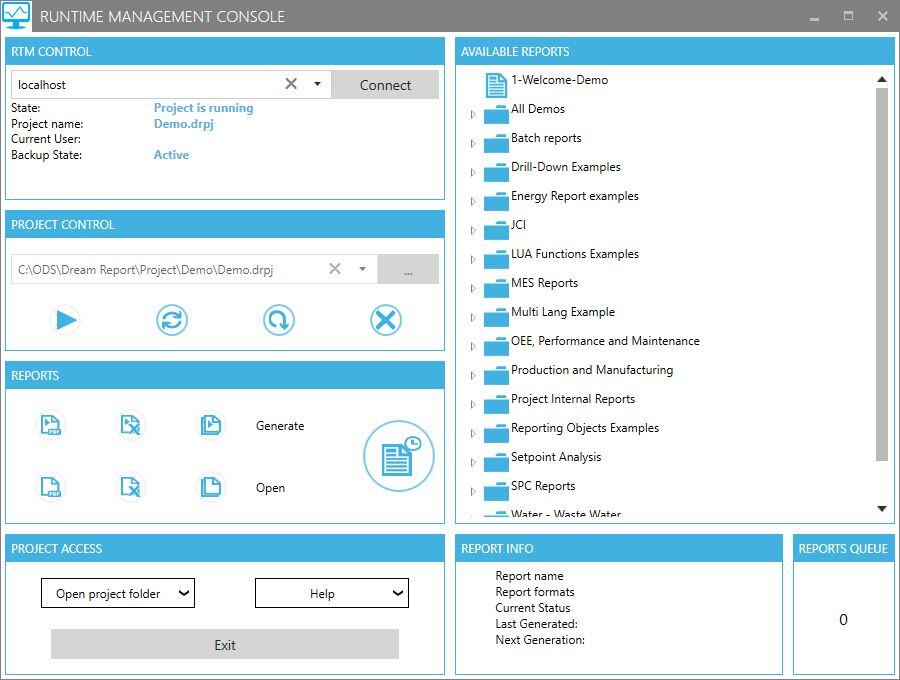 The Dream Report runtime is responsible for executing configured reports. In order to proactively generate and distribute reports the runtime operates silently in the background.