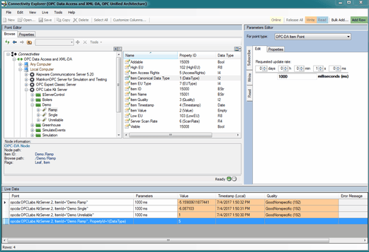It's easy to get started. Essentially, you just double-click the desired OPC data in the Connectivity Explorer application, and then drag the changing grid cell to your Excel spreadsheet.