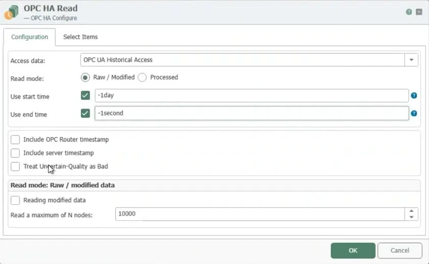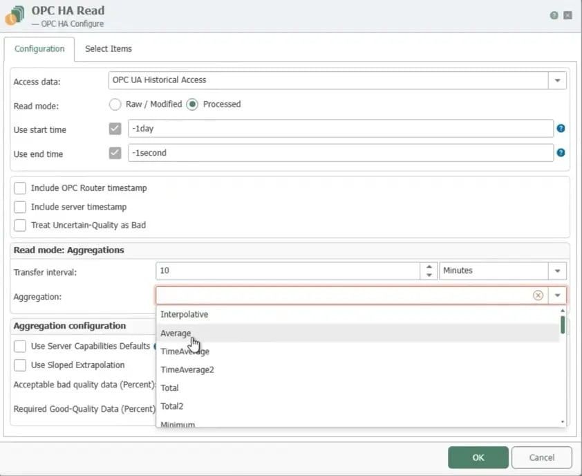 With version 5.4 and higher, support for accessing data via OPC UA Historical Access (HA) was added. This means that historical data including timestamps and aggregates can now also be retrieved from OPC servers that support HA. This enables even deeper analysis and long-term process optimization and sharing of data with any of OPC Router's other plug-ins.